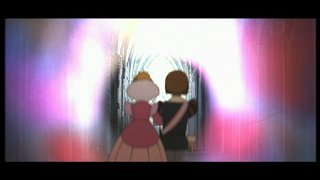The mice army trips up Lucifer long enough for Rosa to meet up with Pierre and get to the tallest point of the castle. Lucifer won't take this lying down, and tries to knock down the tower with his ax. He succeeds but as the tower falls the sun peeks over the horizon, hitting the necklace. This turns Lucifer into bat, and all of his bat-birds into doves which catch Pierre and Rosa, bringing them softly to the ground. Presumably they go off, get married and live happily ever after. No way to confirm this though, since the sequels weren't released here.
